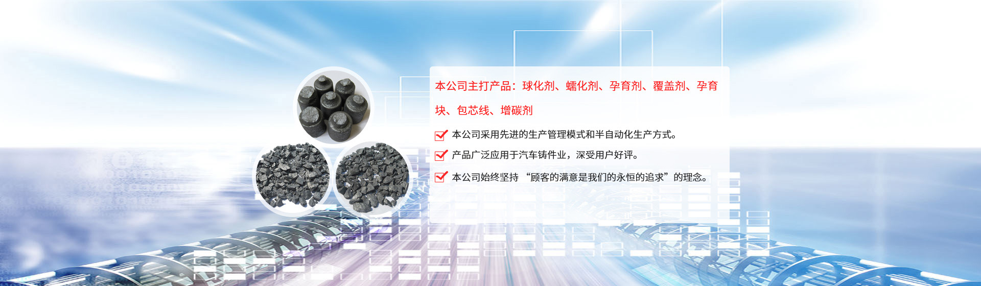 江蘇旦晨新材料科技有限公司、鎮(zhèn)江市勤成鑄造材料有限公司于2010年3月,成立于美麗的水上花園城市—江蘇揚(yáng)中,公司是一股份制企業(yè),注冊(cè)資本為200萬(wàn)人民幣,主要從事鑄造用球化劑、孕育劑及相關(guān)產(chǎn)品的生產(chǎn)、加工和銷售。 公司引進(jìn)日本企業(yè)的生產(chǎn)管理模式,半自動(dòng)化生產(chǎn)方式。目前生產(chǎn)能力:球化劑250T/月、孕育劑300T/月、鑄造相關(guān)品200T/月。為嚴(yán)格控制產(chǎn)品質(zhì)量,公司采用國(guó)內(nèi)的ICP-AES等離子體發(fā)射光譜儀對(duì)采購(gòu)原